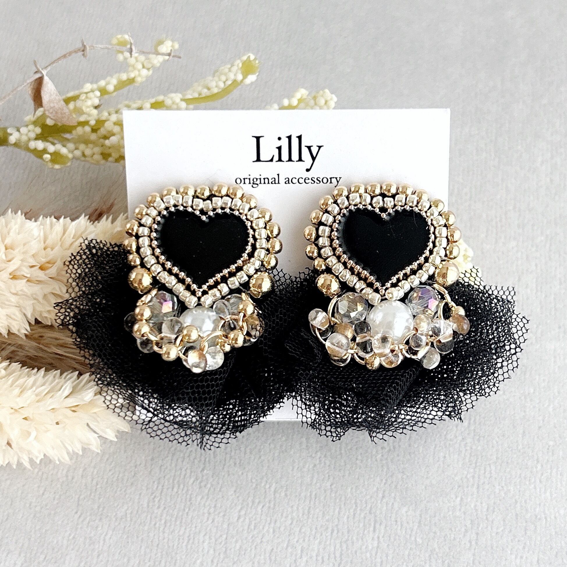 ビーズ刺繍×ブラックハートが