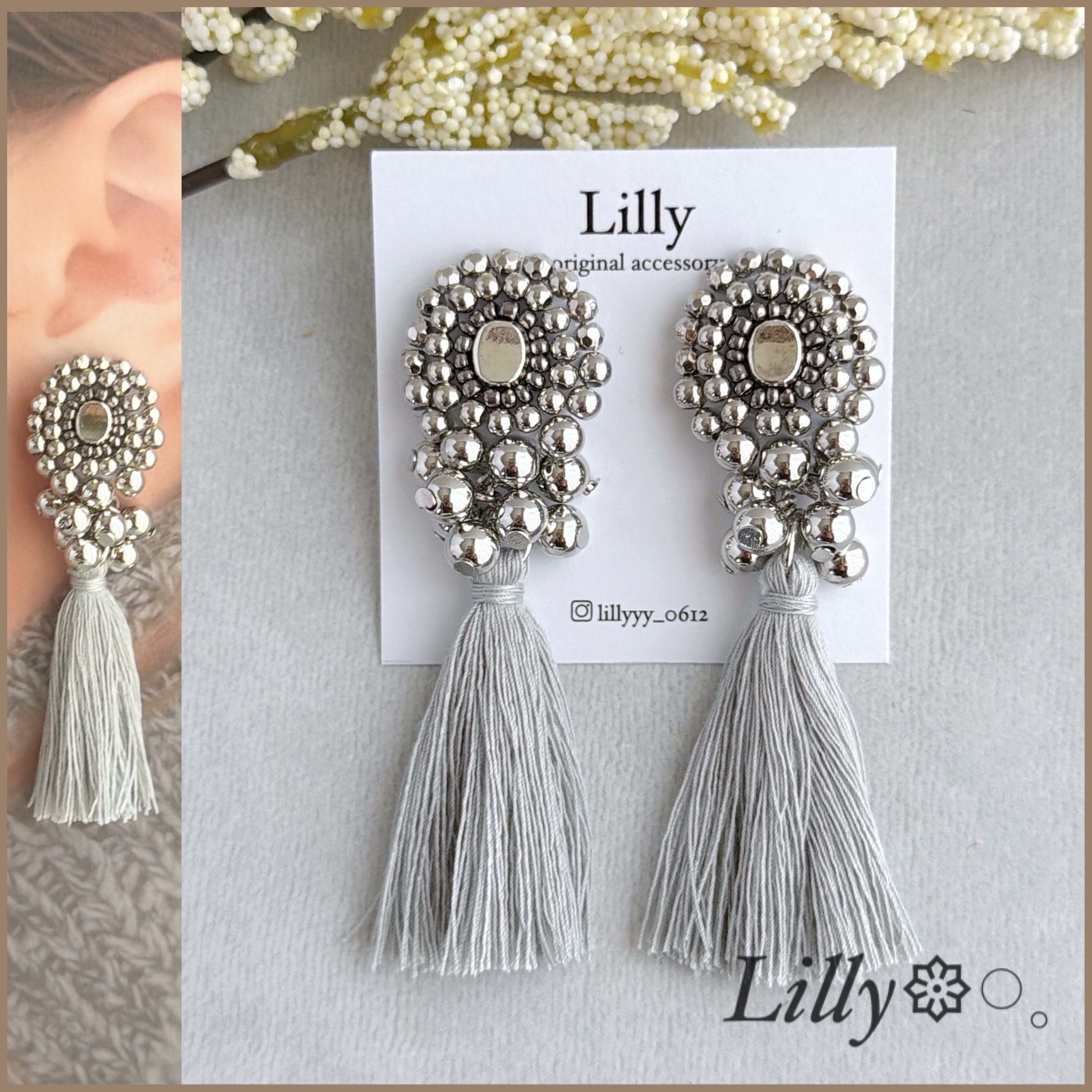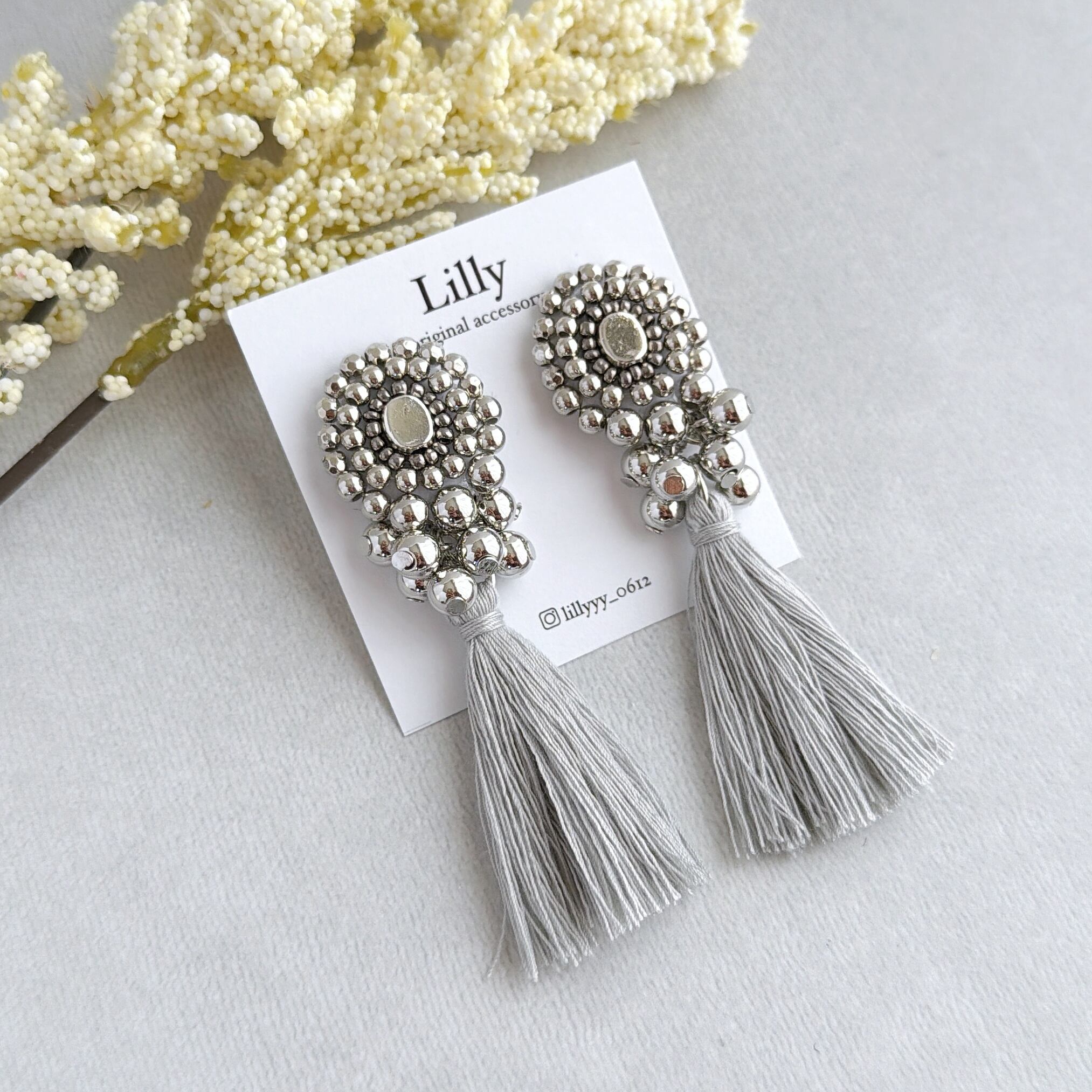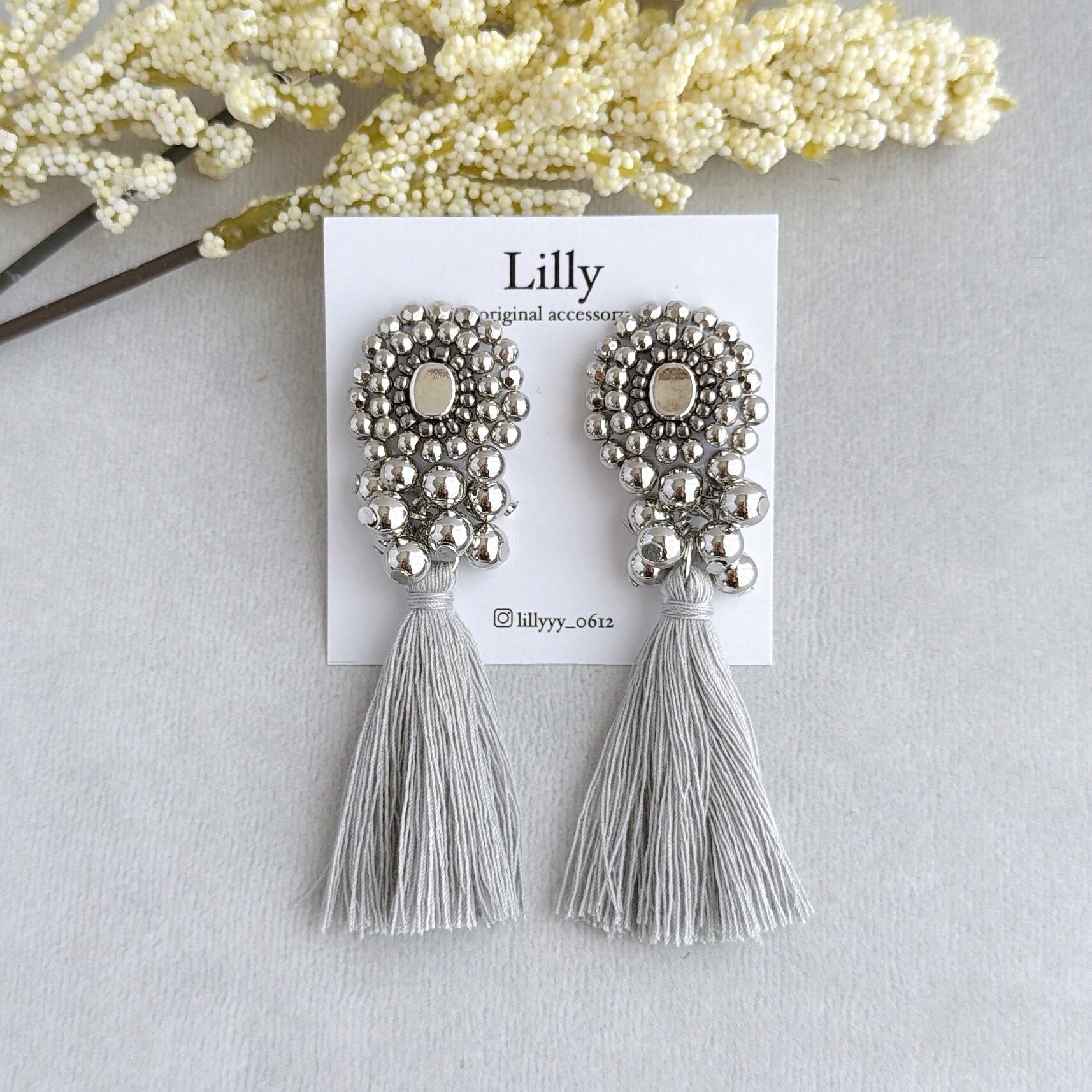 #965大ぶり/ビーズ刺繍/シルバー/タッセル/ハンドメイドピアス イヤリング