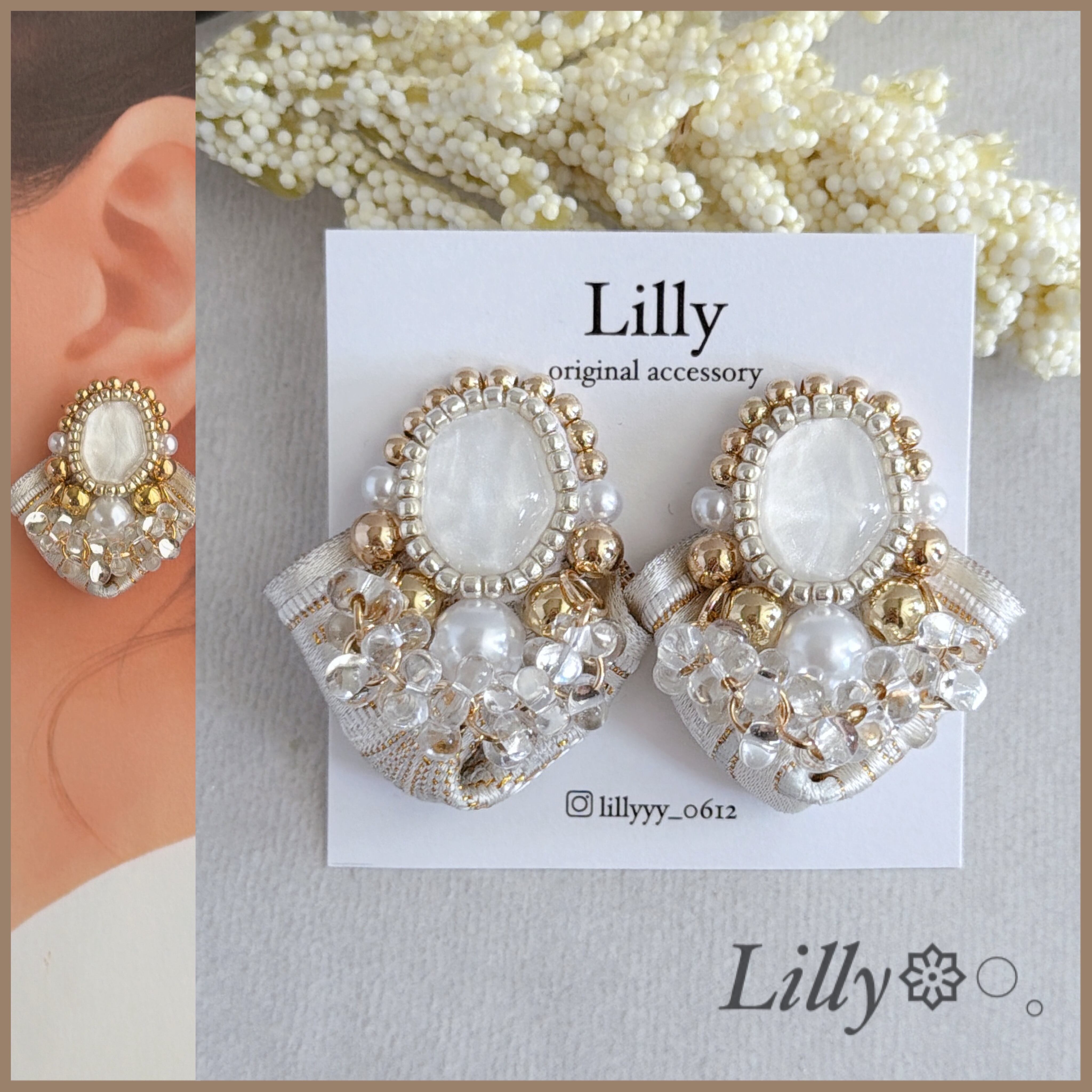揺れるイヤリング ビーズ刺繍